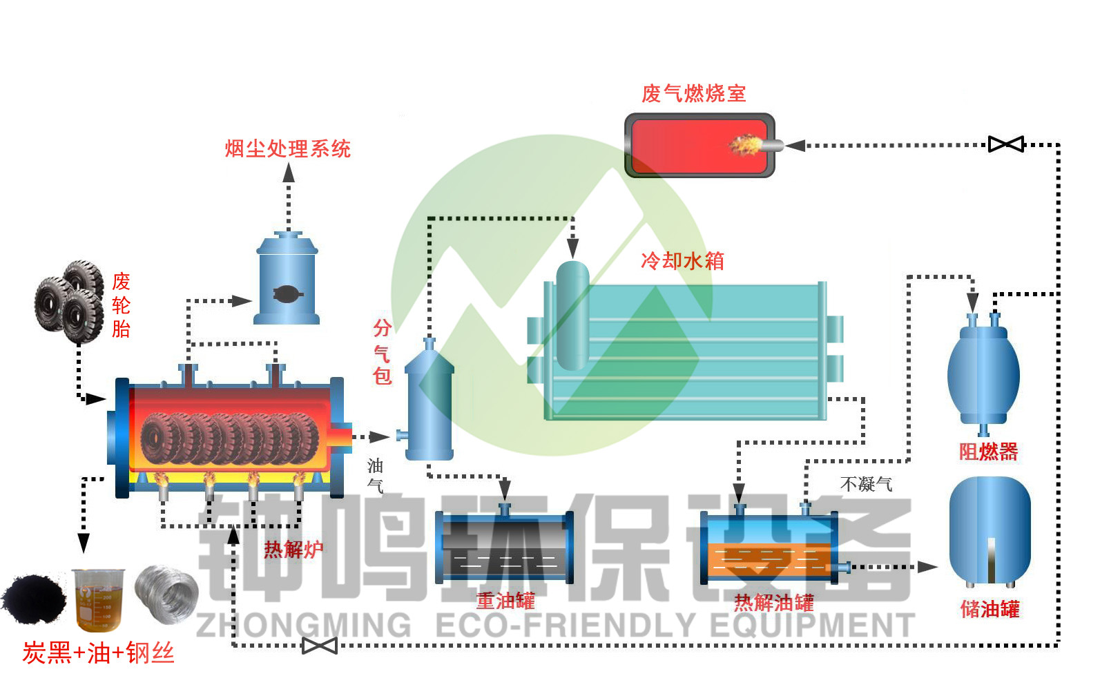 第 5 步:出渣(炭黑) ---- 自動排出的渣由負(fù)壓風(fēng)送設(shè)備通過管道輸送到儲渣倉,確保出渣過程無塵。